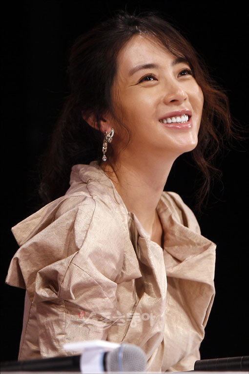 배우 송윤아가 8일 오전 서울 압구정CGV에서 열린 영화 ‘웨딩드레스’(감독 권형진·제작 로드픽쳐스) 제작보고회에서 밝게 미소 짓고 있다.