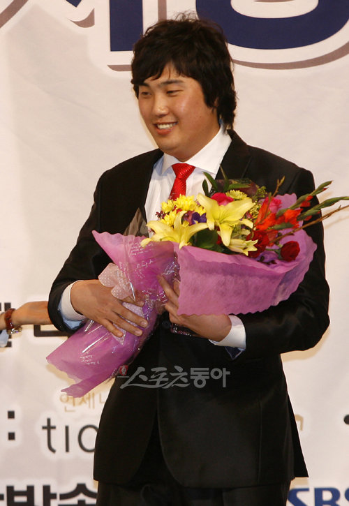 10일 서울 리베라호텔에서 열린 2009 마구마구 프로야구 일구상 시상식에서 최고 투수상을 수상한 조정훈.