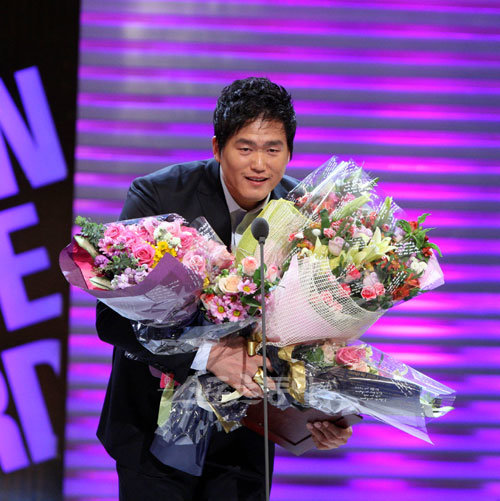 11일 저녁 서울 코엑스 오디토리움에서 열린 2009프로야구 골든글러브 시상식에서 KIA 최희섭이 1루수 부분 골든글러브를 수상하고 있다.