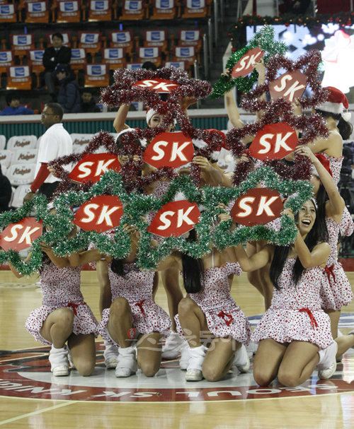 15일 오후 잠실학생체육관에서 열린 2009 남자프로농구 서울 SK 나이츠 대 인천 전자랜드의 경기. 경기에 앞서 치어리더들이 멋진공연을 펼치고 있다.