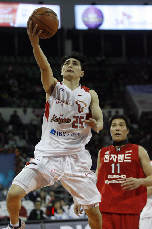 15일 오후 잠실학생체육관에서 열린 2009 남자프로농구 서울 SK 나이츠 대 인천 전자랜드의 경기. SK 주희정이 상대 수비수를 뚫고 공격하고 있다.