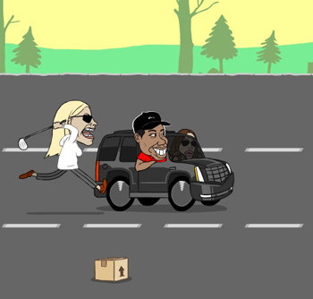 골프황제에서 불륜의 황제가 되어버린 ‘타이거 우즈’의 불륜스캔들과 관련된 파문이 계속되고 있는 가운데, 이를 풍자하는 플래시게임이 인터넷에 등장해 화제가 되고 있다. 게임에서는 검정색 고급 SUV차량에 한 미모의 금발여성을 태운 타이거 우즈가 하얀 이를 드러내고 웃으며 운전하고 있다.