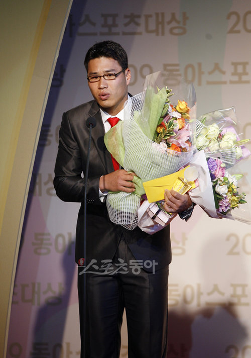 21일 서울 소공동 조선호텔 그랜드볼룸에서 열린 ‘2009 동아스포츠대상’ 시상식에서 프로아구 대상을 수상한 김상현(KIA 타이거즈)이 수상소감을 밝히고 있다.