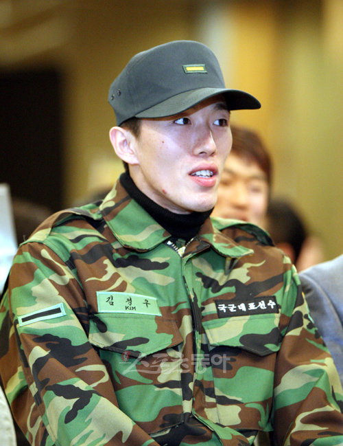 22일 오후 서울 홍은동 그랜드힐튼 호텔에서 컨벤션센터에서 진행된 2009K-리그 대상 시상식에서 이달 초 상무에 입대한 김정우가 군기잡힌 모습으로 시상식장에 들어선 후 앉아 있다.
