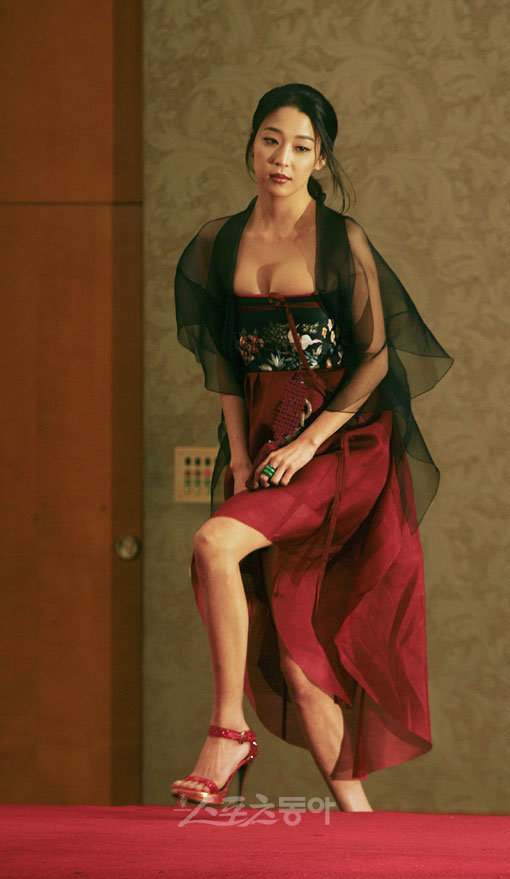 23일 서울 가든호텔에서 열린 KBS 1TV 특별기획 역사드라마 ‘명가’의 제작발표회에 참석한 주연배우 한고은이 무대로 오르고 있다.