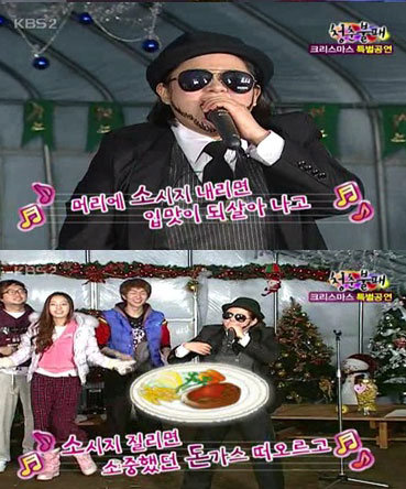 이날 김신영은 '사랑비'를 재미난 가사로 개사해 출연진을 폭소케했다. '머리에 소시지 내리면 입맛이 되살아나고 소시지 질리면 소중했던 돈가스 떠오르고, 돈가스 한 입에 넣으면 목막혀 콜라 외치며, 콜라가 있는 냉장고 따라 먹다가 먹다가 먹다보면 무서운 요요 날 기다려'는 김신영이 개사한 한 부분.