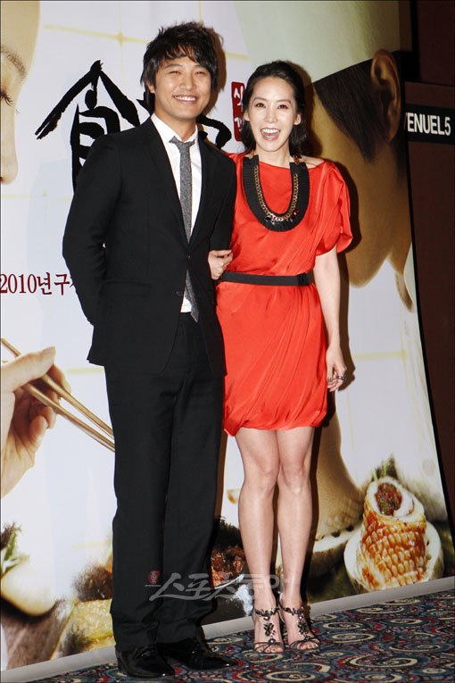 허영만 화백의 동명 만화를 원작으로 한 영화 ‘식객:김치전쟁’(감독 백동훈, 김길형) 제작보고회가 30일 오전 서울 소공동 롯데시네마 명동 에비뉴엘에서 열린 가운데 주연 배우 진구(왼쪽)와 김정은이 포토타임을 갖고 있다.
