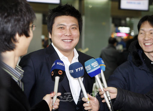 일본 프로야구 무대에 진출한 김태균(28·지바 롯데)이 팀의 2군 훈련조에 합류하기 위해 5일 오전 인천국제공항을 통해 출국했다. 출국 전 언론과 인터뷰를 갖는 김태균의 표정에 여유가 넘치고 있다.