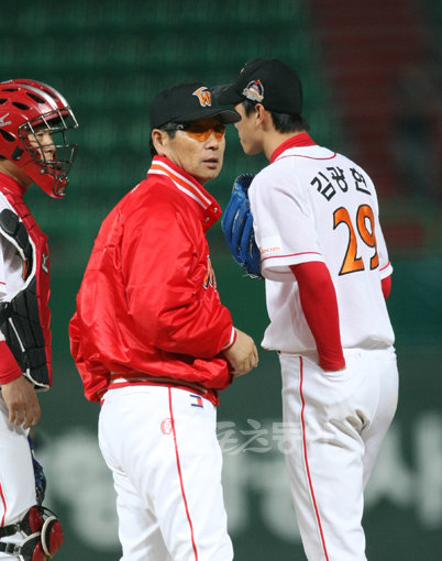 SK 김성근 감독은 에이스 김광현(오른쪽)을 스프링캠프 참가 명단에서 제외했다. ‘야신’의 숨은 뜻은 과연 무엇일까. 스포츠동아DB