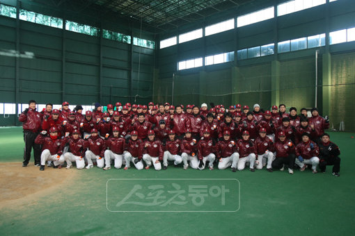 4번째 주장에 선정된 최고참 이숭용(39)은 ‘캡틴’을 자처했다. “팀이 어려운 상황에서 다른 선수들이 부담을 가질까봐서…”라는 것이 이유였다. 영하 10도 이하의 강추위. 이숭용은 후배들과 곳곳에 눈이 덮인 원당구장을 달린 뒤, 구슬땀을 닦았다. 하얀 그라운드가 반사한 빛 때문에 땀방울은 더 빛났다. 두산에서 트레이드 된 ‘2009플레이오프의 히어로’ 금민철(24)은 “히어로즈에서는 내게 더 많은 기회가 있을 것”이라면서 “여기서는 선발을 하고 싶다”며 각오를 다졌다.
