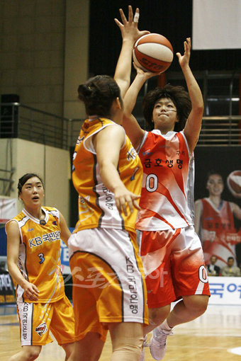 전반을 40-37, 3점 앞선 금호생명은 내외곽의 조화를 앞세워 무려 26점을 쓸어 담았지만 국민은행은 단 10점에 그치며 일찌감치 승부의 추는 금호생명으로 기울었다.