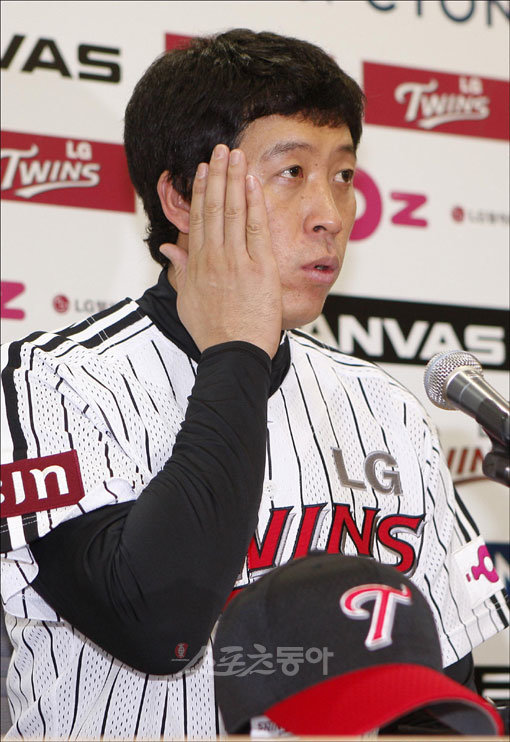3년간의 일본 생활을 마치고 돌아온 이병규(36)가 8일 오후 서울 잠실야구장 LG 트윈스 본사 사무실에서 입단 기자회견을 했다. LG트윈스와 2년간 총 9억 원에 입단 계약을 맺은 이병규가 취재진의 질문에 답하고 있다.