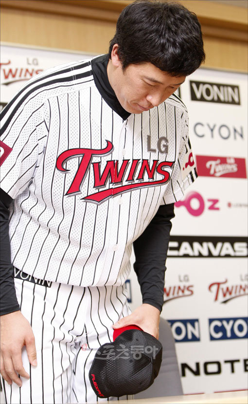 3년간의 일본 생활을 마치고 돌아온 이병규(36)가 8일 오후 서울 잠실야구장 LG 트윈스 본사 사무실에서 입단 기자회견을 했다. LG트윈스와 2년간 총 9억 원에 입단 계약을 맺은 이병규가 기자회견을 마치며 인사하고 있다.