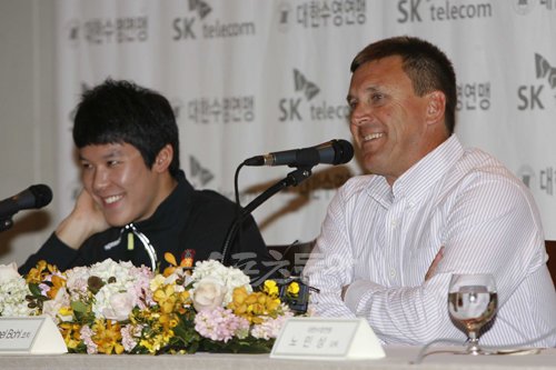 대한수영연맹은 8일 오후 서울 광진구 광장동 쉐라톤그랜드워커힐호텔에서 호주 출신의 마이클 볼코치 영입 기자회견을 열었다. 볼 코치가 취재진의 질문에 답하고 있다.