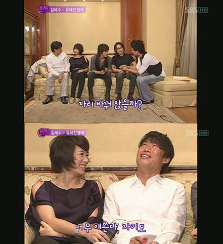 7일 방송된 SBS ‘한밤의 TV연예’는 김혜수-유해진 커플의 열애 소식을 전하며 ‘타짜’ 주인공들과 함께 한 인터뷰 내용을 공개했다. 이날 인터뷰에는 영화에 출연한 김혜수 조승우 유해진 백윤식이 참석.