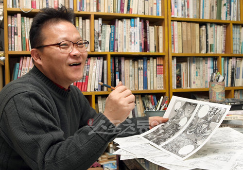 박하 작가와는 평소 친형제처럼 지낸다. 김 화백은 “실수를 많이 저질러 형에게 만날 혼났다”면서도 “형 작품은 무조건 믿을 수 있으니, 난 그림만 신경 쓰면 되니까 좋다”고 손가락을 치켜세웠다.