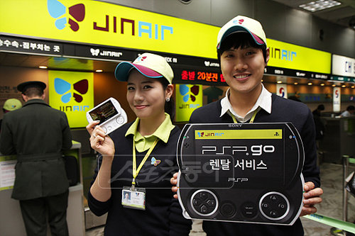 소니 PSP○R(등록기호)go를 이용하기 위해서는 출발 전까지 진에어 홈페이지나 고객서비스센터, 공항카운터를 통해 서비스 신청을 하면 된다. 이용료는 편도 4000원. 소니 측은 대여서비스 유지보수 비용을 제외한 나머지 매출은 전액 환경기금으로 기부할 예정이다. 국제선에서 대여 예정인 PSP○R(등록기호)go는 16GB 대용량의 플래시 메모리가 탑재돼 있으며 기존의 PSP○R(등록기호)보다 작고 가볍게 만들었다.
