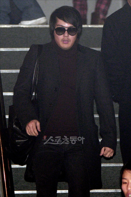 SBS 드라마 ‘미남이시네요’ 의 ‘수건남’ 정용화가 소속 된 그룹 씨엔블루(CNBLUE)의 미니음반 ‘블루토리’ 발매 기념 쇼케이스가 열린 14일 오후 서울 섬유센터. 응원차 참석한 한류스타 박용하가 쇼케이스 관람 후 자리를 나서고 있다.
