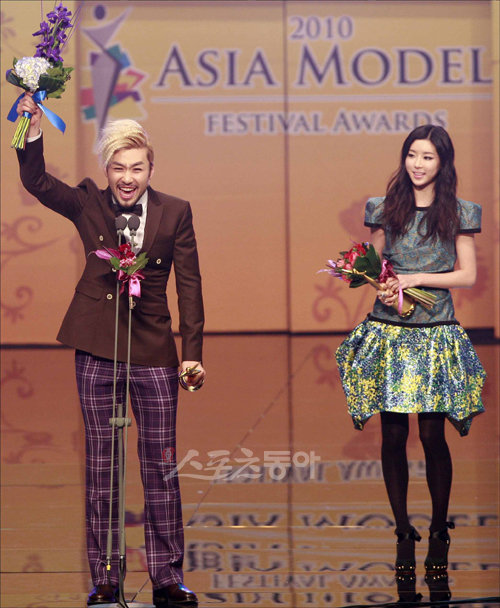15일 오후 서울 올림픽공원 올림픽홀에서 열린 ‘2010 아시아 모델상 시상식’에서 패셔니스타상을 수상한 방송인 노홍철(왼쪽)이 수상소감을 발표하고 있다.