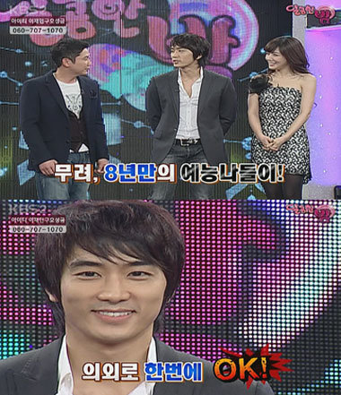 송승헌은 ‘달콤한밤’의 진행자 신동엽과의 친분으로 8년 만에 예능 프로그램에 출연해 관심을 모았다. 송승헌은 이날 이상형 월드컵에 참가해 최종 이상형으로 한가인을 선택했다.