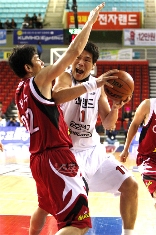 19일 오후 인천삼산월드체육관에서 열린 2009∼2010 KCC 프로농구 인천 전자랜드 엘리펀츠 대 창원 LG 세이커스의 경기에서 전자랜드 서장훈이 골밑을 파고들고 있다.