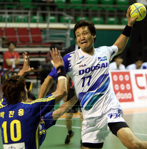 남자 실업핸드볼 ‘최강’ 두산이 19일 서울 올림픽공원 내 펜싱경기장에서 열린 ‘2010SK핸드볼큰잔치 결승 1차전’에서 인천도시개발공사에 25-22로 승리를 거뒀다. 지난 14일 승자 토너먼트 결승에서 22-24로 패해 이미 1패를 안고 싸웠던 두산은 이날 패하면 패권을 넘겨주는 절박한 처지였지만, 박빙 승부 끝에 귀중한 승리를 따내며 승부를 다시 원점으로 돌렸다.