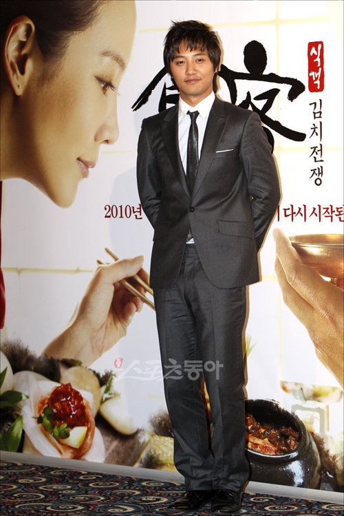 허영만 화백의 동명 만화를 원작으로 한 영화 ‘식객:김치전쟁’(감독 백동훈) 언론시사회가 21일 오후 서울 소공동 롯데시네마 명동 에비뉴엘에서 열린 가운데 주연 배우 진구가 플레시 세례를 받으며 포즈를 취하고 있다. ‘식객:김치전쟁’은 대한민국 대표 음식인 김치의 우수성을 알리는 동시에 한국인의 대표 음식인 김치 요리를 주 소재로 삼은 영화로 28일 개봉 예정이다.