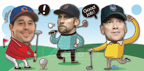 스포츠 스타들 중에서도 수준급의 골프실력을 가진 마니아가 많다. 메이저리그 애틀랜타에서 황금 트로이카 선발진을 구축했던 그렉 매덕스(왼쪽 부터)와 존 스몰츠, 톰 글래빈은 현역시절에도 골프광으로 통했다. 스포츠동아DB
