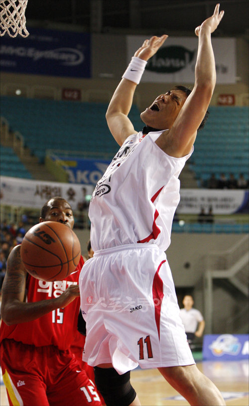 26일 오후 인천삼산월드체육관에서 열린 2009∼2010 KCC 프로농구 인천 전자랜드 엘리펀츠 대 대구 오리온스의 경기에서 전자랜드 서장훈이 상대 수비의 파울로 인해 볼을 놓치고 있다.