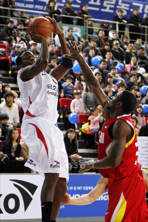 26일 오후 인천삼산월드체육관에서 열린 2009∼2010 KCC 프로농구 인천 전자랜드 엘리펀츠 대 대구 오리온스의 경기에서 전자랜드 벨이 중거리 슛을 시도하고 있다.