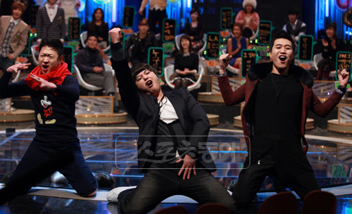 ![예능복학생 3인방은 과연 올해 예능전쟁에서 승리할 수 있을까? SBS 인기 프로그램 ‘강심장’에 출연한 (왼쪽부터) 천명훈,