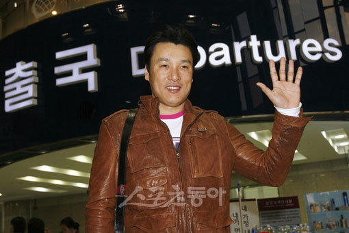 일본프로야구 요미우리 자이언츠에서 재기에 도전하는 이승엽이 29일 오전 두 달간의 국내 체류를 마치고 김포공항을 통해 일본으로 출국하기 앞서 취재진을 향해 출국장에서 손을 흔들어 보이고 있다.