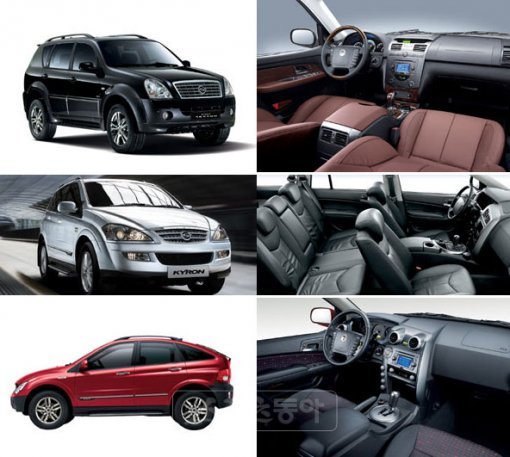 쌍용자동차 (사진 위부터)렉스턴, 카이런, 액티언.