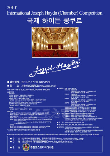 한국하이든협회(회장 변미정)가 2010년 국제하이든콩쿠르를 2월 17일 서울예술고등학교에서 개최한다.