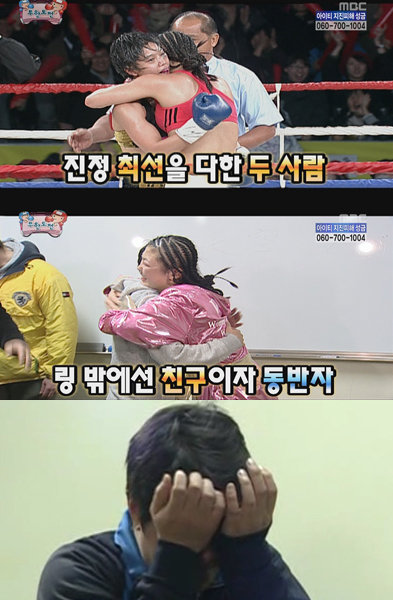 이날 유재석은 “아름다운 여자선수들이 링 위에서 주먹을 맞교환하며 최선을 다하는 모습에 마음이 울컥울컥한다”며 눈시울을 붉혔다.