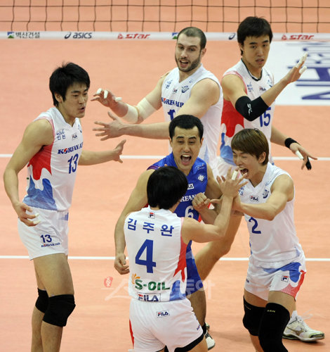 31일 수원실내체육관에서 열린 NH농협 2009~2010 V리그 남자부 경기에서 대한항공은 접전 끝에 KEPCO45를 3-1로 꺾고 17승6패를 마크, 1위 삼성화재(20승3패)를 3게임차로 따라붙었다.