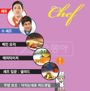 음식을 창조하는 공간, 주방의 서열은 하느님도 못 바꾼다. 그만큼 엄격하다. 일단 인턴십(Internship)을 마치고 들어가면 처음에 어시스턴트(Assistant)를 한다. ‘주방 보조’로 각 파트 업무를 익히며 잡일을 도맡는 역할이다. 다음은 ‘콜드 키친’. 샐러드와 찬 음식을 만든다. 이어 찬 애피타이저, 뜨거운 애피타이저, 메인 요리 라인으로 순으로 올라간다. 이를 모두 마치면 소시에(Saucier)가 된다. 조리 라인에서 거치는 마지막 단계로 모든 음식에 대한 충분한 이해가 있어야 가능한 숙련된 기술과 총체적인 능력을 요구한다.그 다음은 수 셰프(Sous Chef·부주방장). 셰프 바로 밑으로 주방장의 오른손과 같은 역할이다. 모든 스테이션(파스타, 스테이크 등 각각 요리를 만드는 유닛)의 관리를 총괄하고 메뉴 개발에 참여한다. ‘주방의 꽃’은 셰프 드 퀴진(Chef de Cuisine·주방장)이다. 총 책임자로 흔히 ‘셰프’로 불리며 주방의 모든 일을 책임진다. 레스토랑의 규모가 크면 셰프 위로 이그제큐티브 수 셰프(Executive Sous Chef·부총주방장)와 이그제큐티브 셰프(Executive Chef·총주방장)도 있다. 반면 규모가 작으면 단순하게 주방장과 부주방장으로만 구분한다.