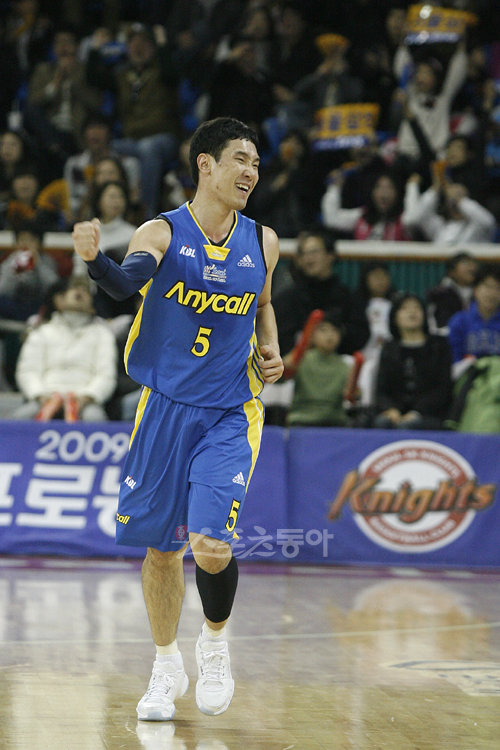 7일 오후 잠실학생체육관에서 열린 2009 남자프로농구 SK 나이츠 대 삼성 썬더스의 경기. 삼성의 이정석이 3점슛을 성공시키고 세리머니하고 있다.