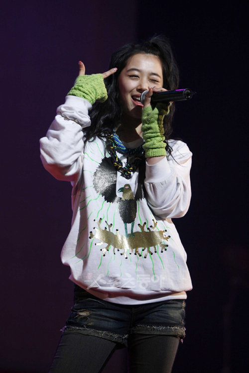 9일 서울 코엑스에서 열린 제 7회 맥스무비 최고의 영화상 시상식에서 축하무대를 장식하고 있는 그룹 f(x)의 설리.