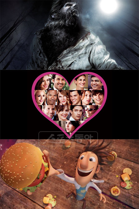 설 연휴 많은 영화가 관객들의 선택을 기다리고 있다. 설을 앞두고 11일 개봉한 영화 ‘울프맨’ ‘발렌타인데이’ ‘하늘에서 음식이 내린다면’ (맨 위 사진부터). 스포츠동아DB