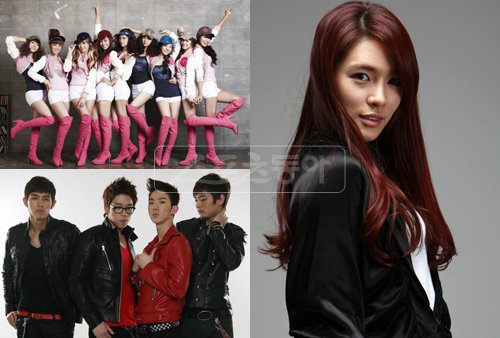 설 연휴에도 아이돌 그룹의 활약은 어김없이 이어진다. 소녀시대(왼쪽 위), 2AM(왼쪽 아래), 애프터스쿨의 가희(오른쪽) 등이 재능을 발휘하며 시청자를 만난다. 스포츠동아DB
