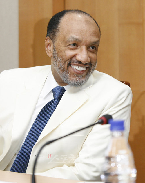 모하메드 빈 함맘 아시아축구연맹(AFC) 회장이 16일 축구협회를 방문해 기자회견을 갖고 있다.