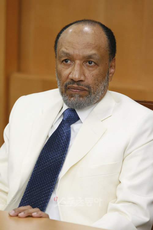 모하메드 빈 함맘 아시아축구연맹(AFC) 회장이 16일 축구협회를 방문해 기자회견을 갖고 있다.