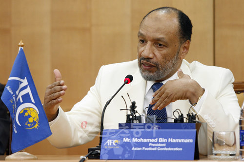 모하메드 빈 함맘 아시아축구연맹(AFC) 회장이 16일 축구협회를 방문해 기자회견을 갖고 있다.