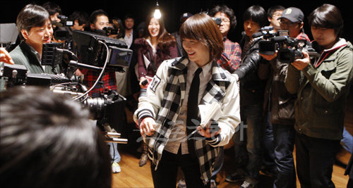 화가, 작가, 작곡가, 단편영화 감독 등 다양한 예술 분야에서 활발한 활동을 펼치고 있는 만능 엔터테이너 구혜선의 장편상업영화 감독 데뷔작 ‘요술’의 촬영현장이 21일 오후 경기도 고양아람누리 새라새극장에서 공개 됐다.연출, 시나리오, 작곡, 출연까지 1인 4역을 소화한 구혜선 감독이 취재진에 둘러싸여 있다.