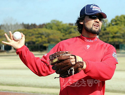 뉴욕 양키스와 계약을 체결한 박찬호가 험난했던 계약과정을 공개했다. 사진은 두산의 일본 미야자키 캠프에서 훈련하는 모습.사진제공| 두산베어스