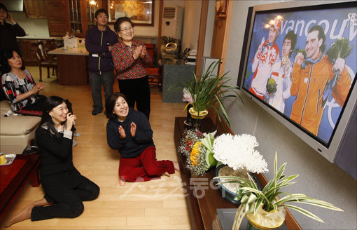 24일(한국시간) 2010 밴쿠버 동계올림픽 스피드스케이팅 남자 10,000m에서 금메달을 거머쥔 이승훈의 본가가 위치한 서울 중구 예장동. 이승훈이 시상대의 가장 높은 곳을 점령하는 모습을 TV 중계로 지켜보던 가족들이 박수를 치며 기뻐하고 있다.