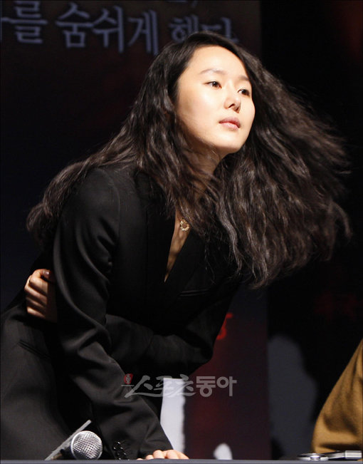 배우 유지태와 윤진서가 ‘올드보이’ 이후 7년 만에 호흡을 맞춘 영화 ‘비밀애’의 제작보고회가 24일 오후 서울 이화여교 100주년 기념관에서 열린 가운데, 윤진서가 머리결을 흩날리며 착석하고 있다.