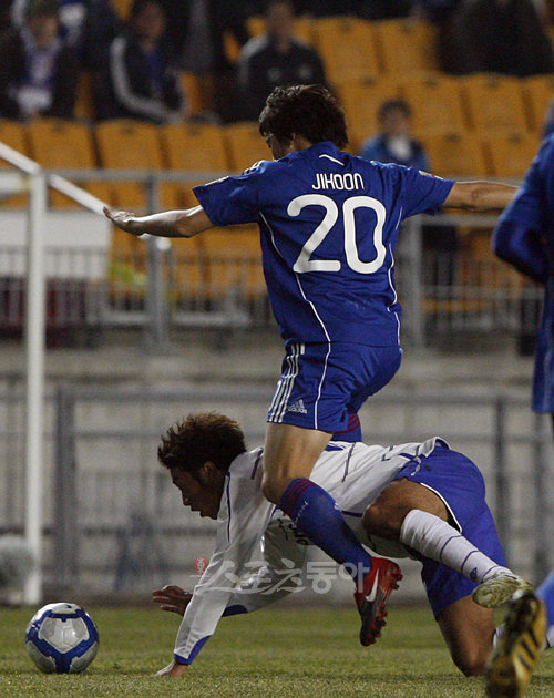 2010 아시아축구연맹(AFC) 조별리그 G조 1차전 수원 삼성 대 일본 J-리그의 강호 감바 오사카 경기가 24일 수원월드컵경기장에서 열렸다. 수원 백지훈와 오사카 나가자와가 볼을 다투고 있다.