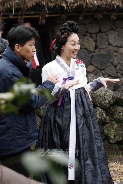 26일 오전 제주도 서귀포시 제주민속촌박물관에서 진행 된 KBS 1TV 특별기획 역사드라마 ‘거상(巨商) 김만덕’(극본 김진숙·강다영, 연출 강병택·김성윤) 촬영 현장공개에서 탤런트 이미연(오른쪽)이 강병택 PD와 리허설을 하고 있다.